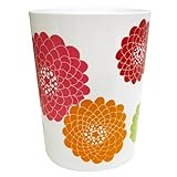 Allure Home Creations Stella Pink printed plastic wastebasket adds fun to any bathroom. It is a beautiful white ground with the large scale three color floral.